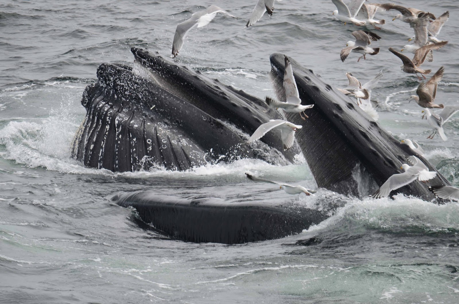 Many people ask: What happens if the whale eats a seagull? The whale usually just spits it out! Its throat is usually not big enough to swallow the bird. |